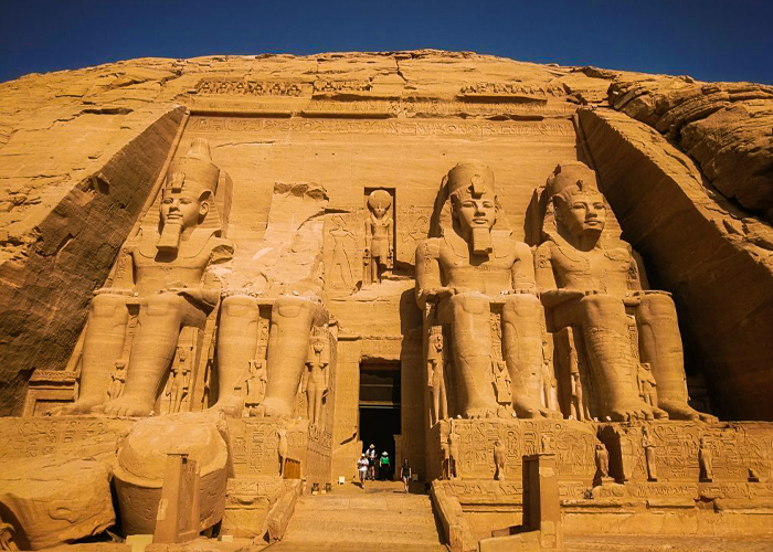 We will pick you up from your hotel in Aswan at 3:30 AM and drive you to Abu Simbel, where you'll see two temples: the Temple of Queen Nefertari and the Temple of Ramses II. Both were built during the reign of Pharaoh Ramses II. The two impressive temples were first cut out of the living rock during the reign of Ramses II.